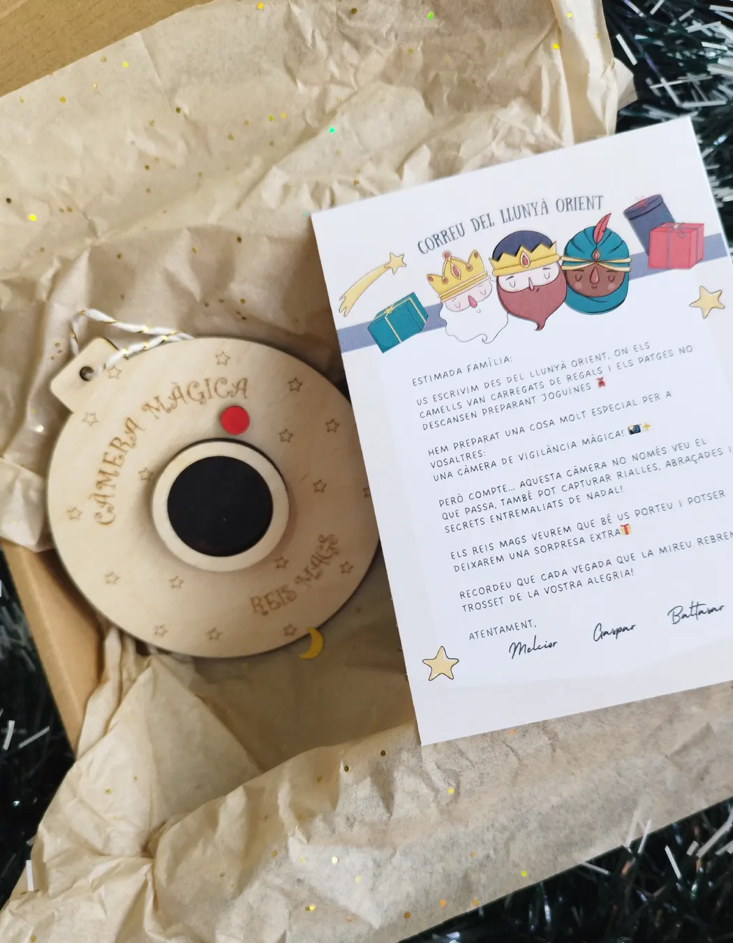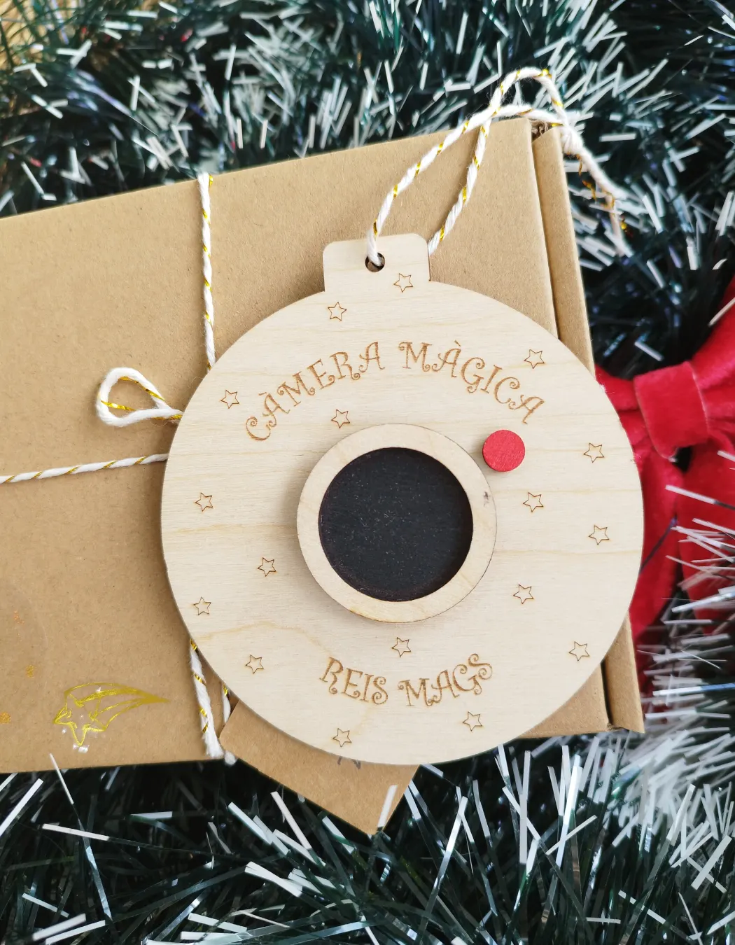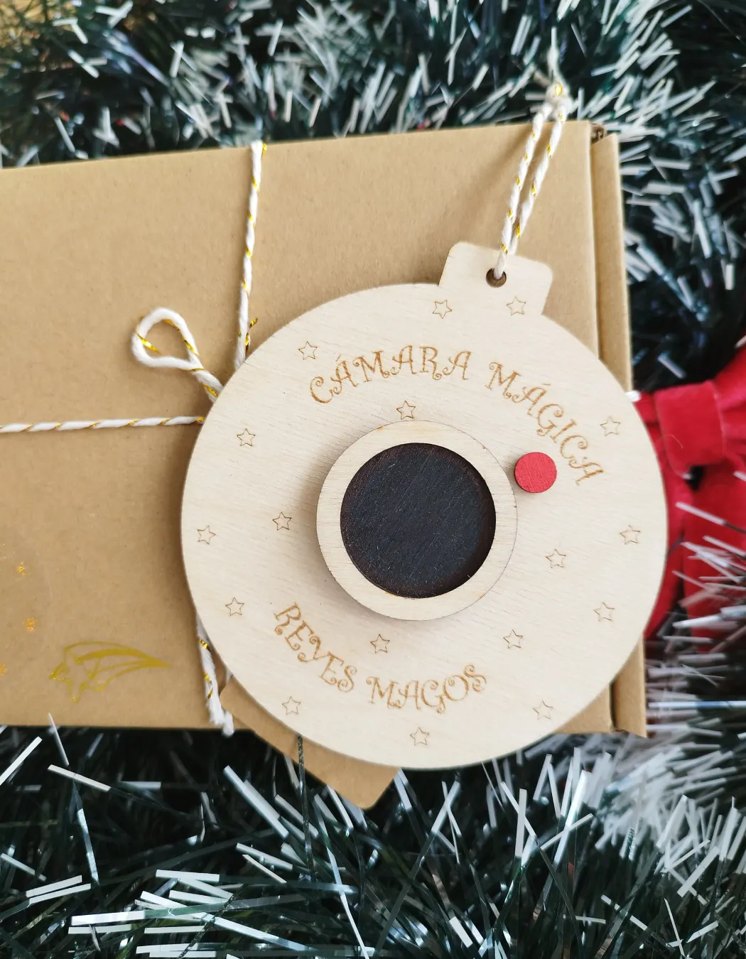 Sorprende a los pequeños de casa con la Cámara Mágica de los Reyes Magos, un regalo único y lleno de ilusión que encantará a los más pequeños. Hecha con corte láser en madera de pino y pintada a mano. Cada cámara es una pieza especial que captura la magia de la Navidad y la convierte en un recuerdo inolvidable.