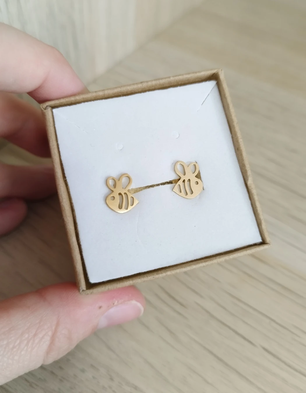 Pendientes Abeja con cierre a presión. Resistentes al agua y antialérgicos, en acero de alta calidad. Incluye el par.