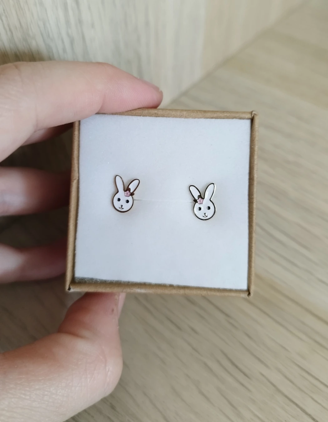 Pendientes Conejitas, con cierre a presión. Resistentes al agua y antialérgicos, en acero de alta calidad. Incluye el par.