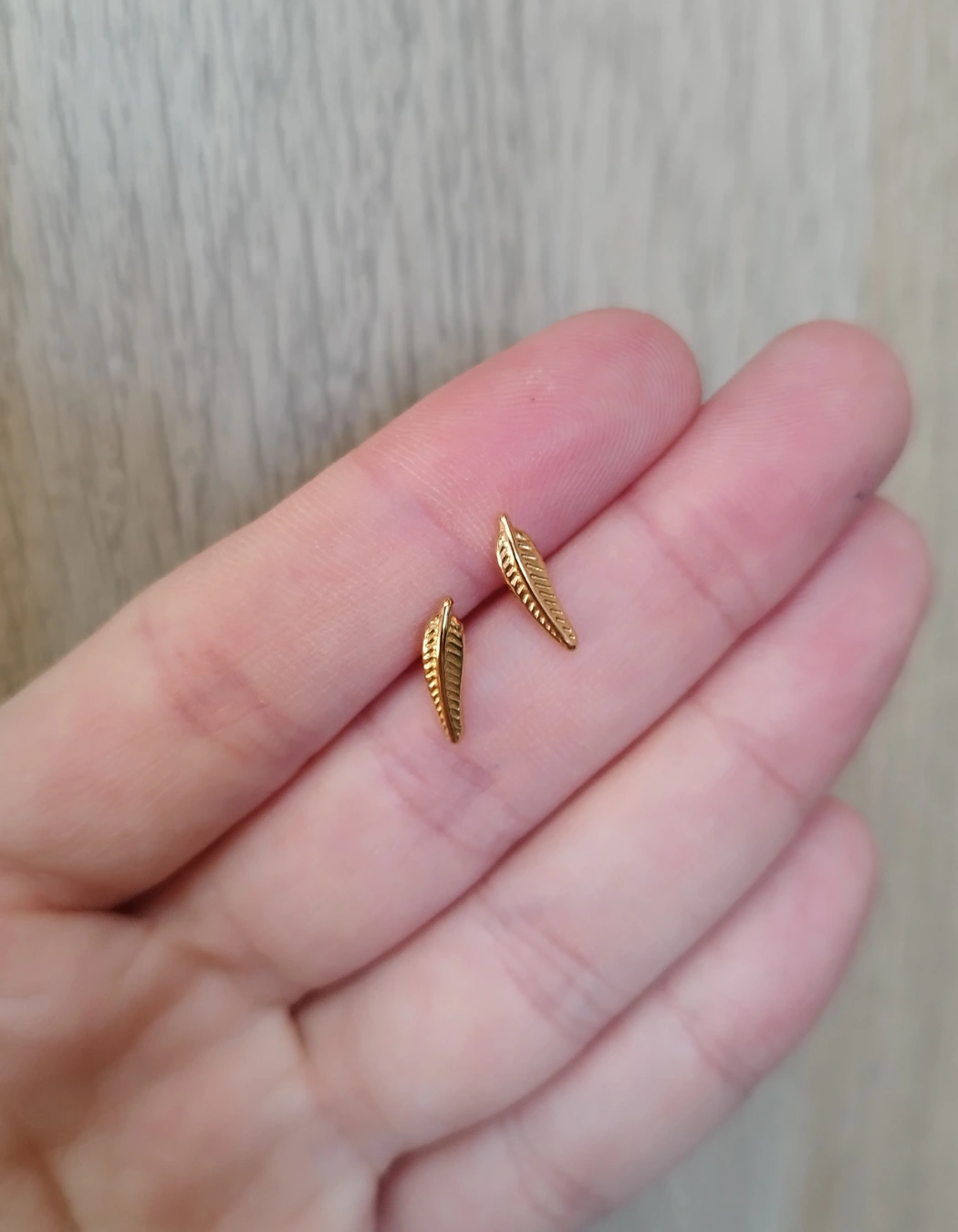 Pendientes Hojas Doradas. Cierre de rosca, anticlavaduras. Antialérgicos y resistentes al agua. Material acero.