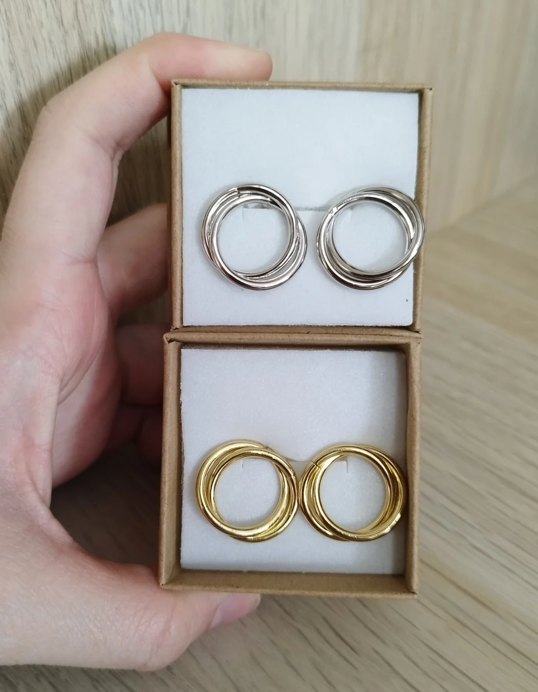 Pendientes Redonda Doble. Resistentes al agua y antialérgicos, en acero de alta calidad. Incluye el par.